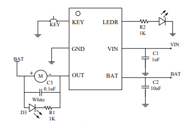 集成线性充电,按键控制及直流电机驱动三合一芯片 YX2818
